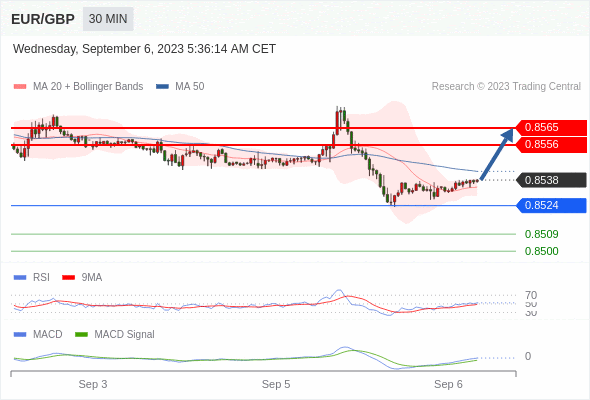 欧元/英镑 当日内: 看涨。