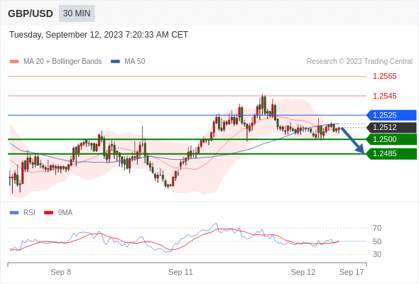 在 1.2525 之下,看跌,目标价位为 1.2500 ,然后为 1.2485 。