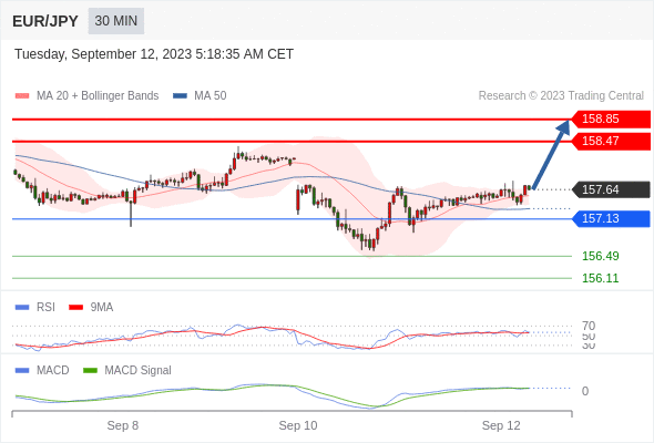 如跌破 157.13 ,EUR/JPY 目标方向定在 156.49 和 156.11 。