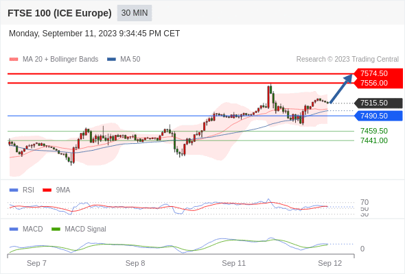 英国富时100指数期货 当日内: 看涨,当 7490.50 为支撑位。