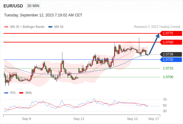 在 1.0730 之上,看涨,目标价位为 1.0760 ,然后为 1.0775 。