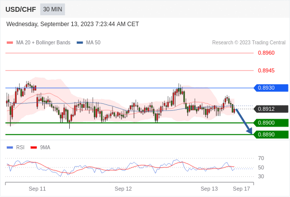 在 0.8930 之下,看跌,目标价位为 0.8900 ,然后为 0.8890 。