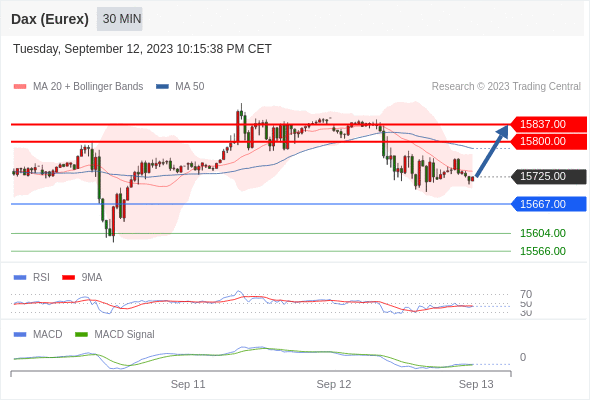 德国DAX指数期货 (Eurex)? 当日内: 有上涨的可能,目标价位定在 15837.00 。
