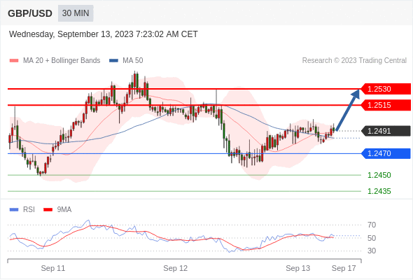 在 1.2470 之上,看涨,目标价位为 1.2515 ,然后为 1.2530 。