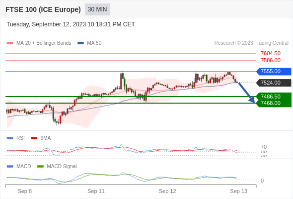 英国富时100指数期货 当日内: 看跌,当 7555.00 为阻力位。