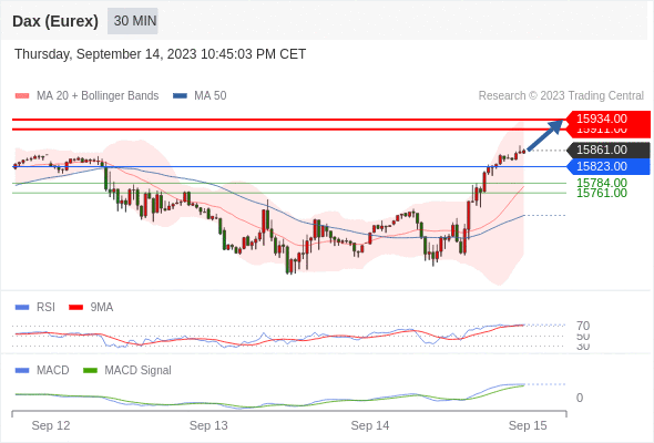 如跌破 15823 ,德国DAX指数期货 (Eurex) 目标方向定在 15784 和 15761 。