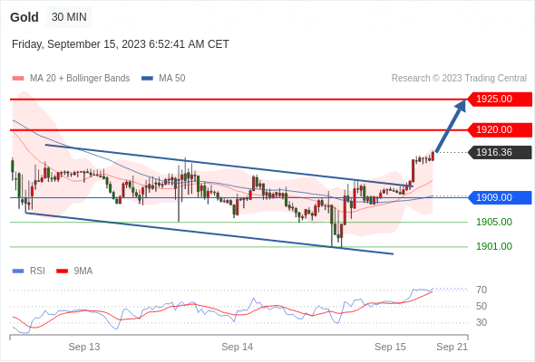 在 1909.00 之上,看涨,目标价位为 1920.00 ,然后为 1925.00 。