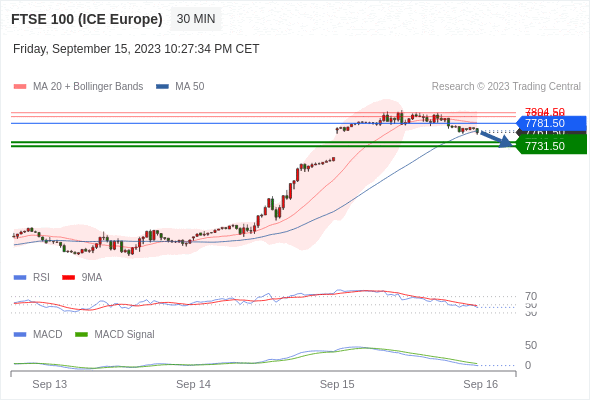 英国富时100指数期货 当日内: 看跌,当 7781.50 为阻力位。