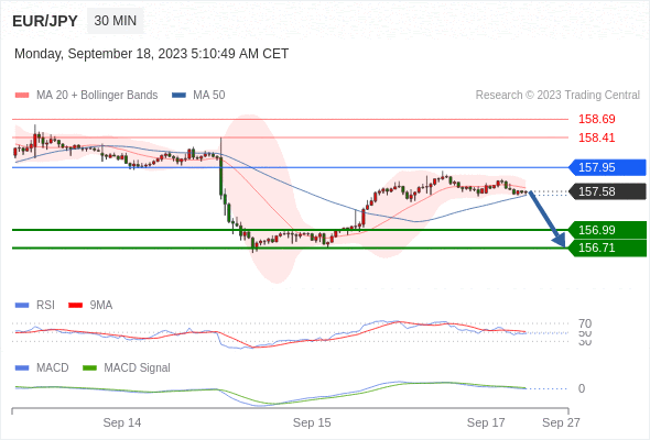 如突破 157.95 ,EUR/JPY 目标方向为 158.41 和 158.69 。