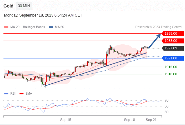 在 1921.00 之上,看涨,目标价位为 1933.00 ,然后为 1938.00 。