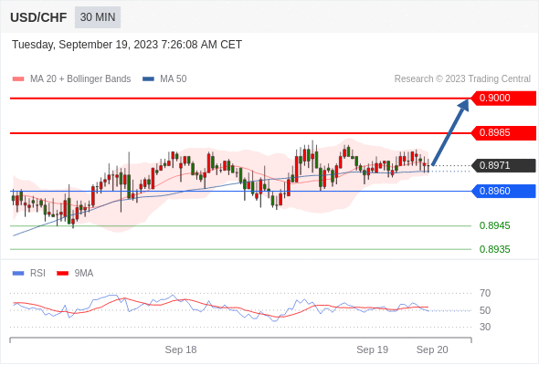 在 0.8960 之上,看涨,目标价位为 0.8985 ,然后为 0.9000 。