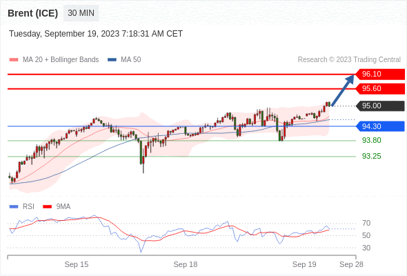 在 94.30 之上,看涨,目标价位为 95.60 ,然后为 96.10 。