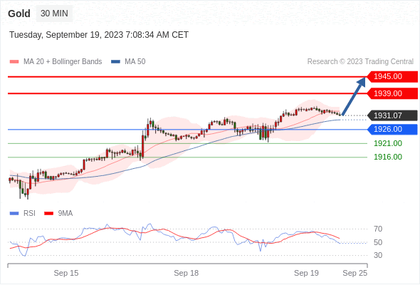 在 1926.00 下,看空,目标价位定在 1921.00 ,然后为 1916.00。