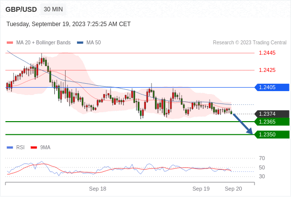 在 1.2405 之下,看跌,目标价位为 1.2365 ,然后为 1.2350 。