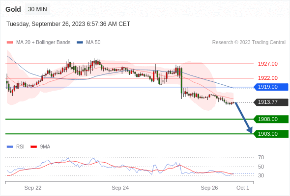 在 .00 之下,看跌,目标价位为 1908.00 ,然后为 1903.00 。