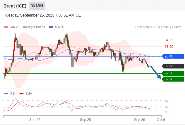 在 93.40 之下,看跌,目标价位为 92.50 ,然后为 92.20 。