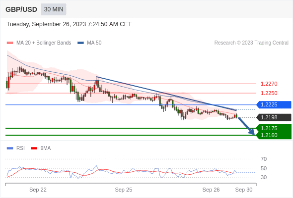 在 1.2225 之下,看跌,目标价位为 1.2175 ,然后为 1.2160 。