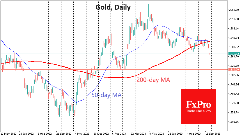 尽管金价周三的走势令人印象深刻,但历史表明,这不太可能是金价下跌的最后阶段。2022年7月发生的“死亡交叉”事件与此次非常相似。当时,股价下跌了7%。甚至更早,在2021年2月,抛售仅下跌9%后就停止了;同年8月,该指数下跌了近7%。