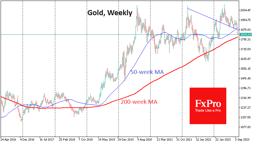 离这个水平不远的是200周移动平均线。这是超长期趋势的重要指标。在过去的六年里,黄金一直是在低于这条线时买入的,使其保持在3.5%以下。这条较低的防线离1750美元不远。