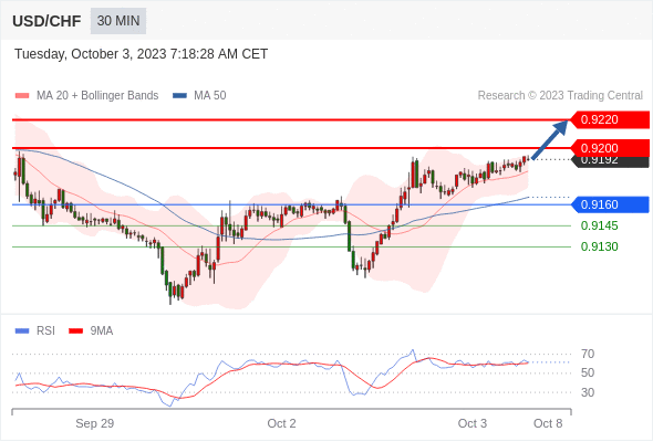 在 0.9160 之上,看涨,目标价位为 0.9200 ,然后为 0.9220 。