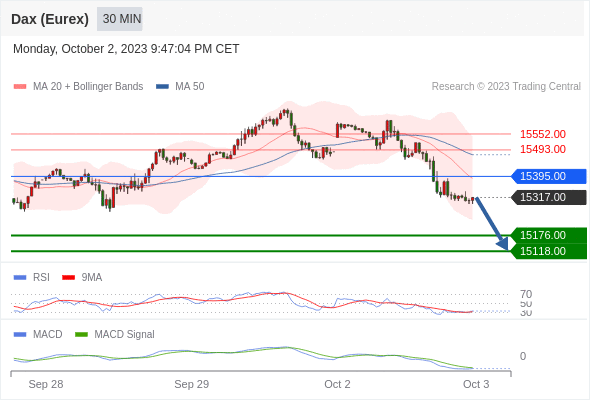 德国DAX指数期货 (Eurex)? 当日内: 看跌,在 15395.00 之下。