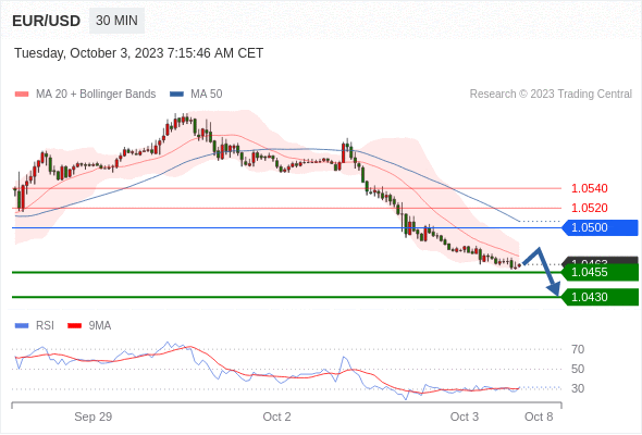 在 1.0500 之下,看跌,目标价位为 1.0455 ,然后为 1.0430 。