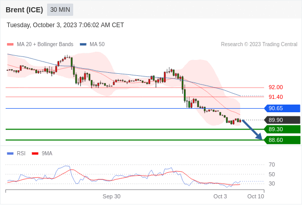 布伦特原油 (ICE)? (Z3)? 当日内: 目标位为88.60。
