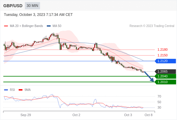在 1.2120 之下,看跌,目标价位为 1.2040 ,然后为 1.2010 。