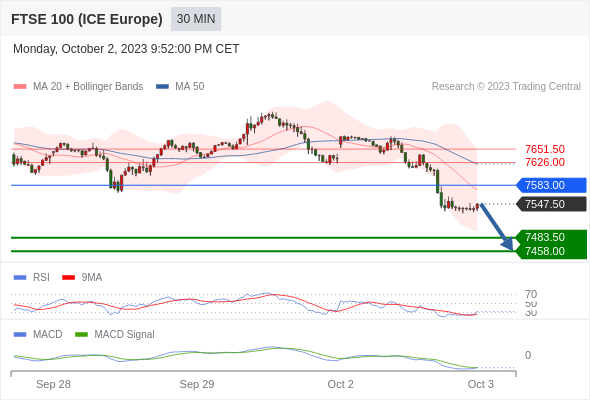 英国富时100指数期货 当日内: 看跌,在 7583.00 之下。