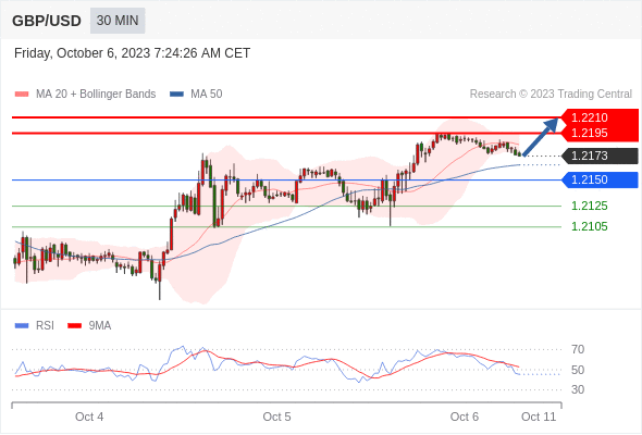 在 1.2150 之上,看涨,目标价位为 1.2195 ,然后为 1.2210 。