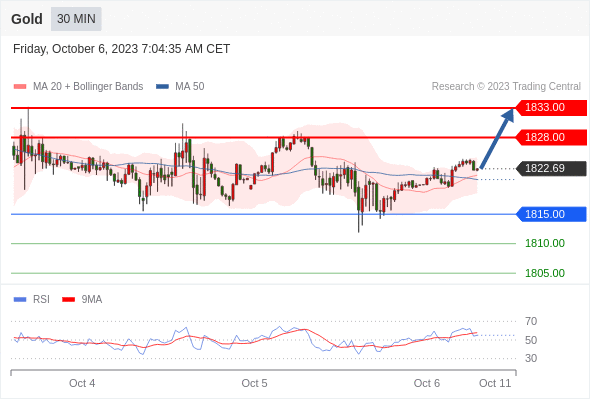 在 1815.00 之上,看涨,目标价位为 1828.00 ,然后为 1833.00 。