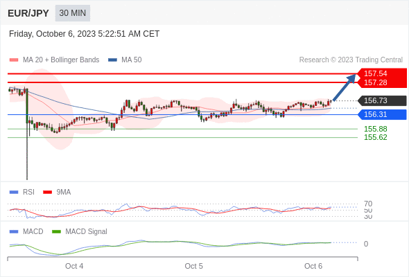 欧元/日元 当日内: 看涨,当 156.31 为支撑位。