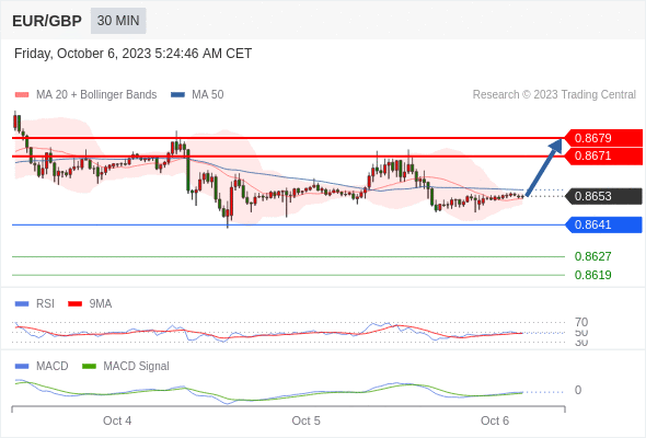 欧元/英镑 当日内: 有上涨的可能,目标价位定在 0.8679 。