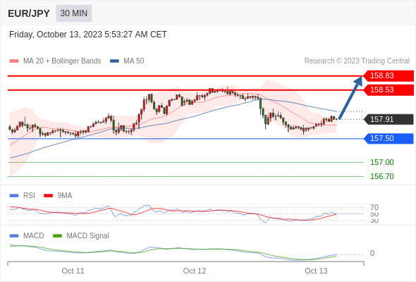 如跌破 157.50 ,EUR/JPY 目标方向定在 157 和 156.70 。