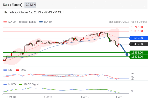 德国DAX指数期货 (Eurex)? 当日内: 看跌,在 15580.00 之下。