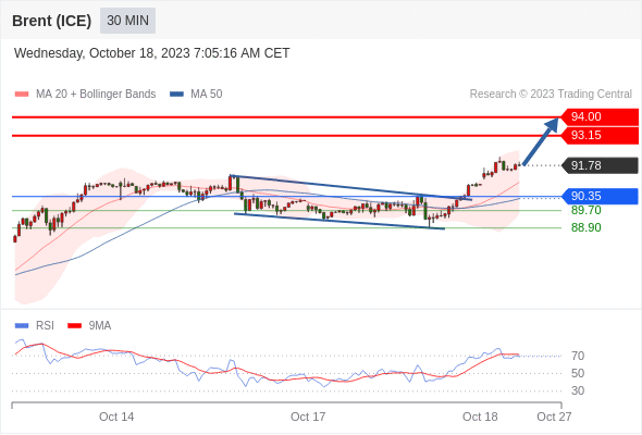 在 90.35 之上,看涨,目标价位为 93.15 ,然后为 94.00 。
