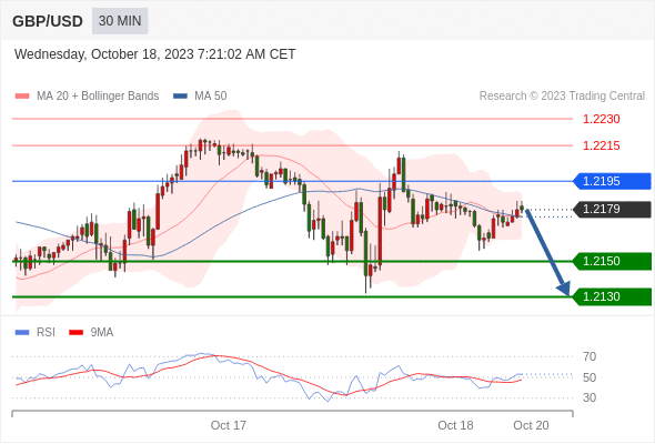 在 1.2195 之下,看跌,目标价位为 1.2150 ,然后为 1.2130 。