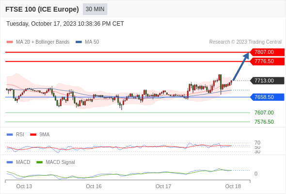 英国富时100指数期货 当日内: 看涨,当 7658.50 为支撑位,目标定在7807.00。