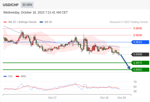 在 0.9015 之下,看跌,目标价位为 0.8970 ,然后为 0.8955 。