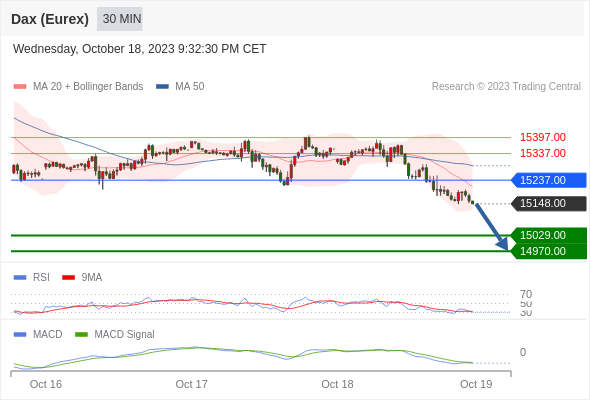 德国DAX指数期货 (Eurex)? 当日内: 看跌,在 15237.00 之下。