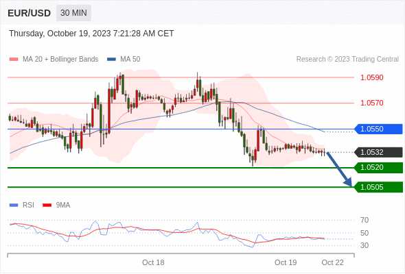 在 1.0550 之下,看跌,目标价位为 1.0520 ,然后为 1.0505 。
