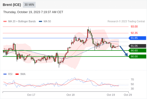 布伦特原油 (ICE)? (Z3)? 当日内: 短期关键阻力位在91.85。