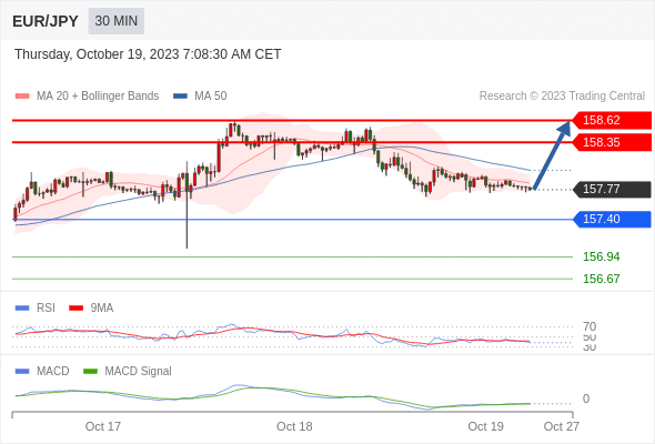 欧元/日元 当日内: 有上涨的可能,目标价位定在 158.62 。