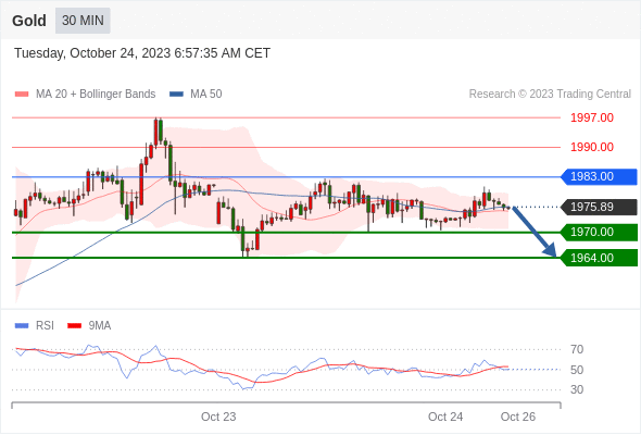 在 1983.00 之下,看跌,目标价位为 1970.00 ,然后为 1964.00 。