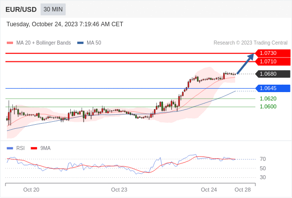 在 1.0645 之上,看涨,目标价位为 1.0710 ,然后为 1.0730 。