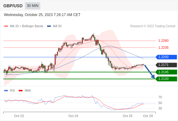 在 1.2200 之下,看跌,目标价位为 1.2145 ,然后为 1.2120 。