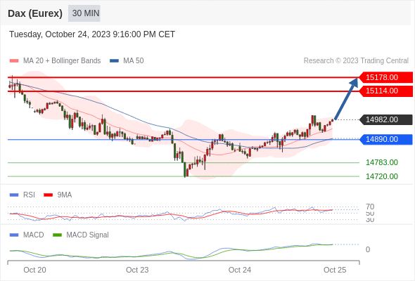德国DAX指数期货 (Eurex)? 当日内: 看涨,当 14890.00 为支撑位。