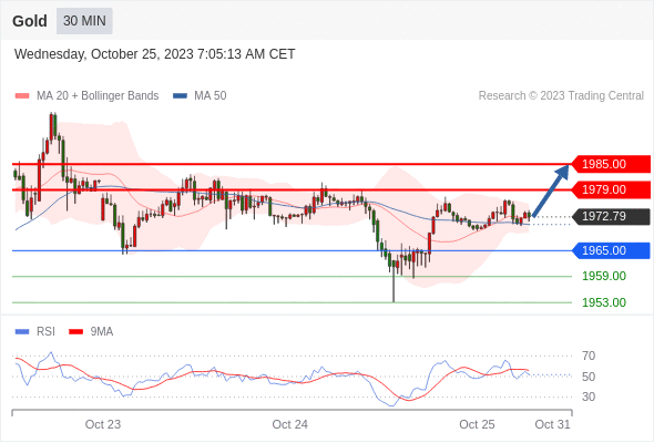 在 1965.00 之上,看涨,目标价位为 1979.00 ,然后为 1985.00 。