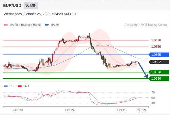 在 1.0625 之下,看跌,目标价位为 1.0570 ,然后为 1.0550 。