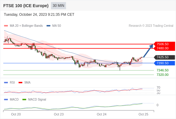 英国富时100指数期货 当日内: 看涨,当 7390.50 为支撑位。